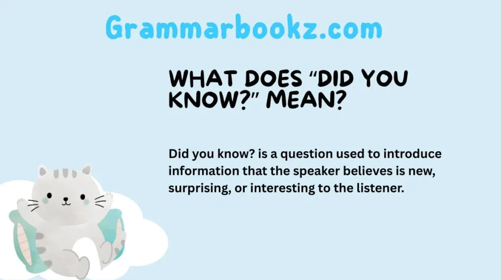 Did you know? is a question used to introduce information that the speaker believes is new, surprising, or interesting to the listener.