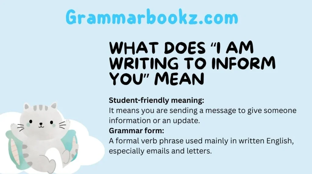 The phrase “I am writing to inform you” is one of the most common openings in English emails, letters, and formal messages. It clearly tells the reader why you are contacting them.